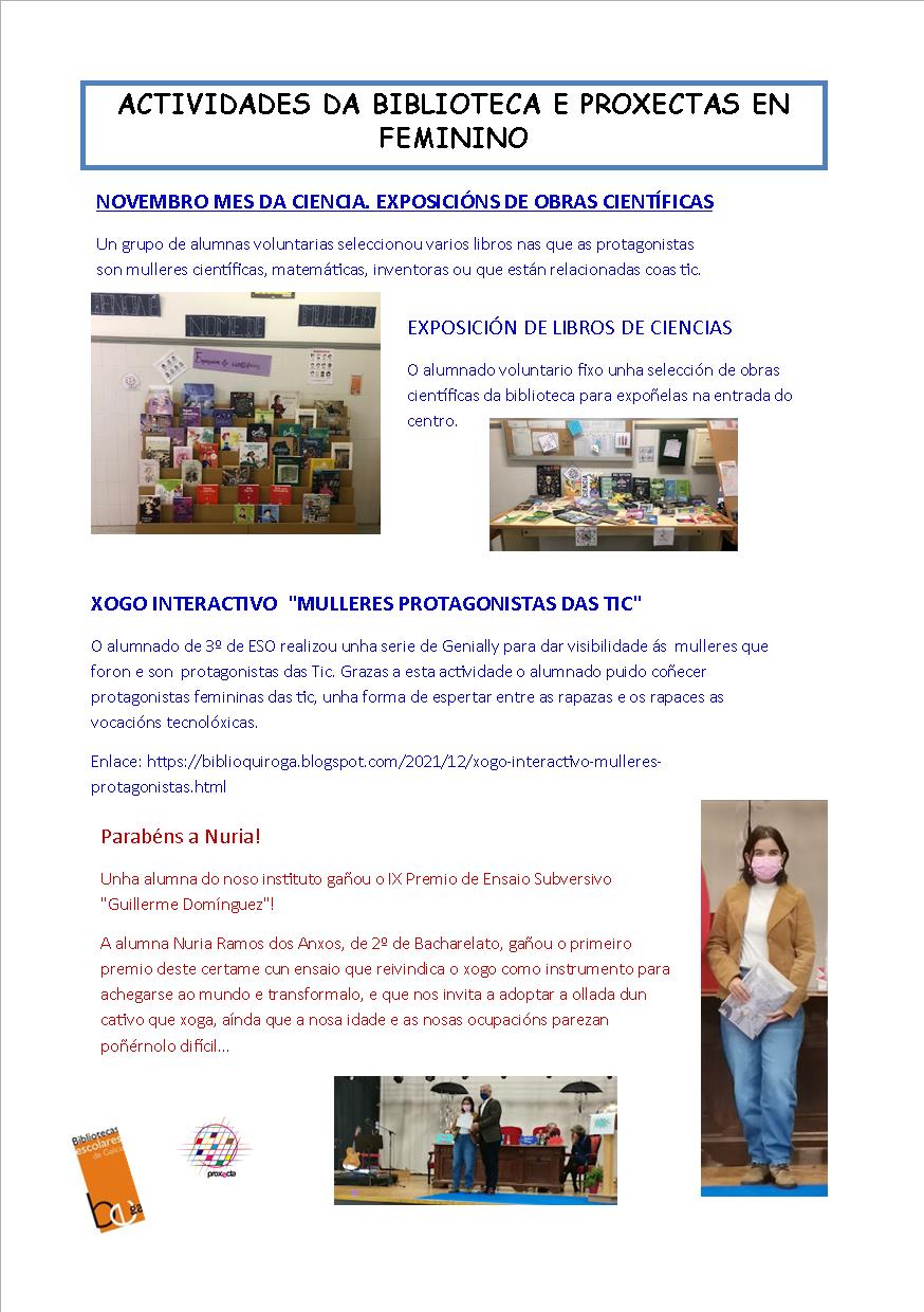 Un grupo de alumnas voluntarias seleccionou varios libros nas que as protagonistas son mulleres científicas, matemáticas, inventoras ou que están relacionadas coas tic.